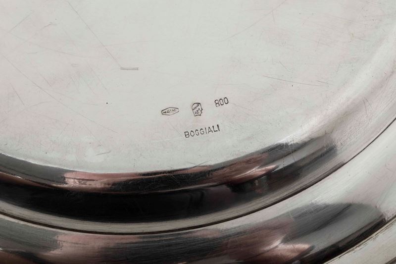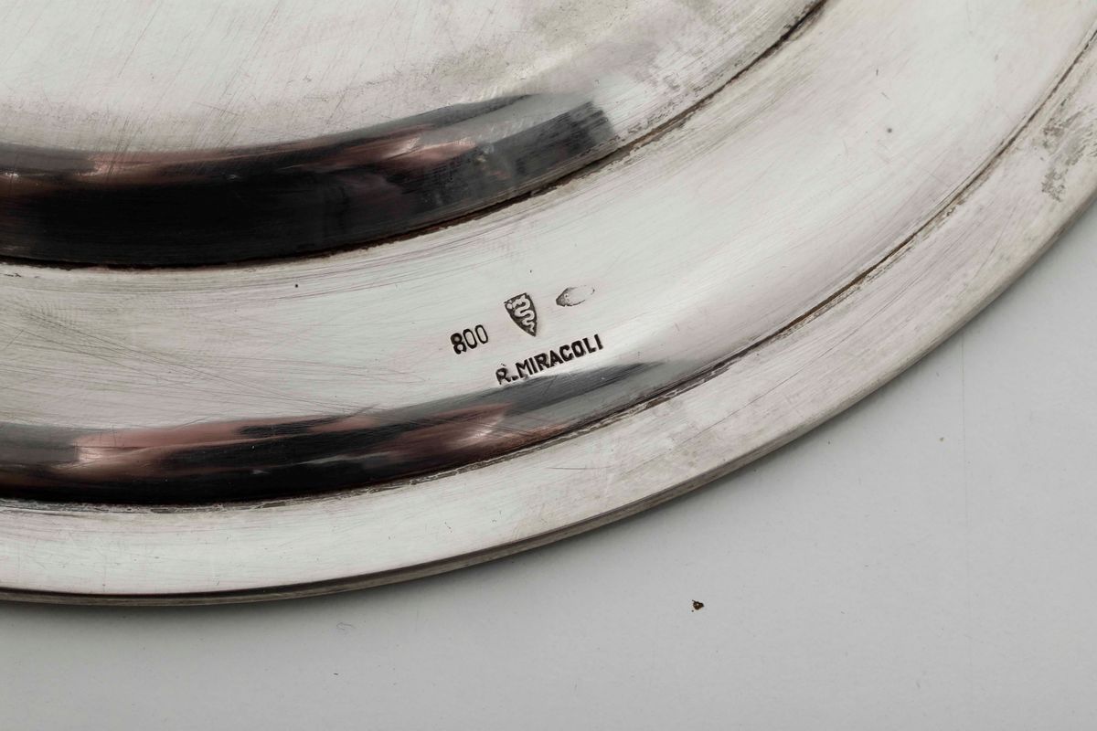 (6 piatti Argenteria Boggioli Milano gr. 1350 tot, 4 piatti Argenteria Miracoli Milano gr. 930 tot, 1 piatto da portata Calderoni Gioielli Milano gr. 475)