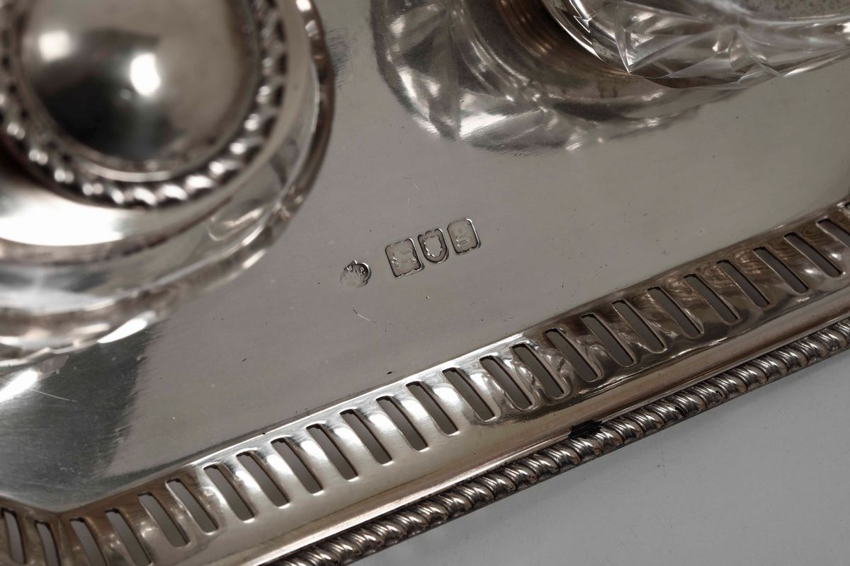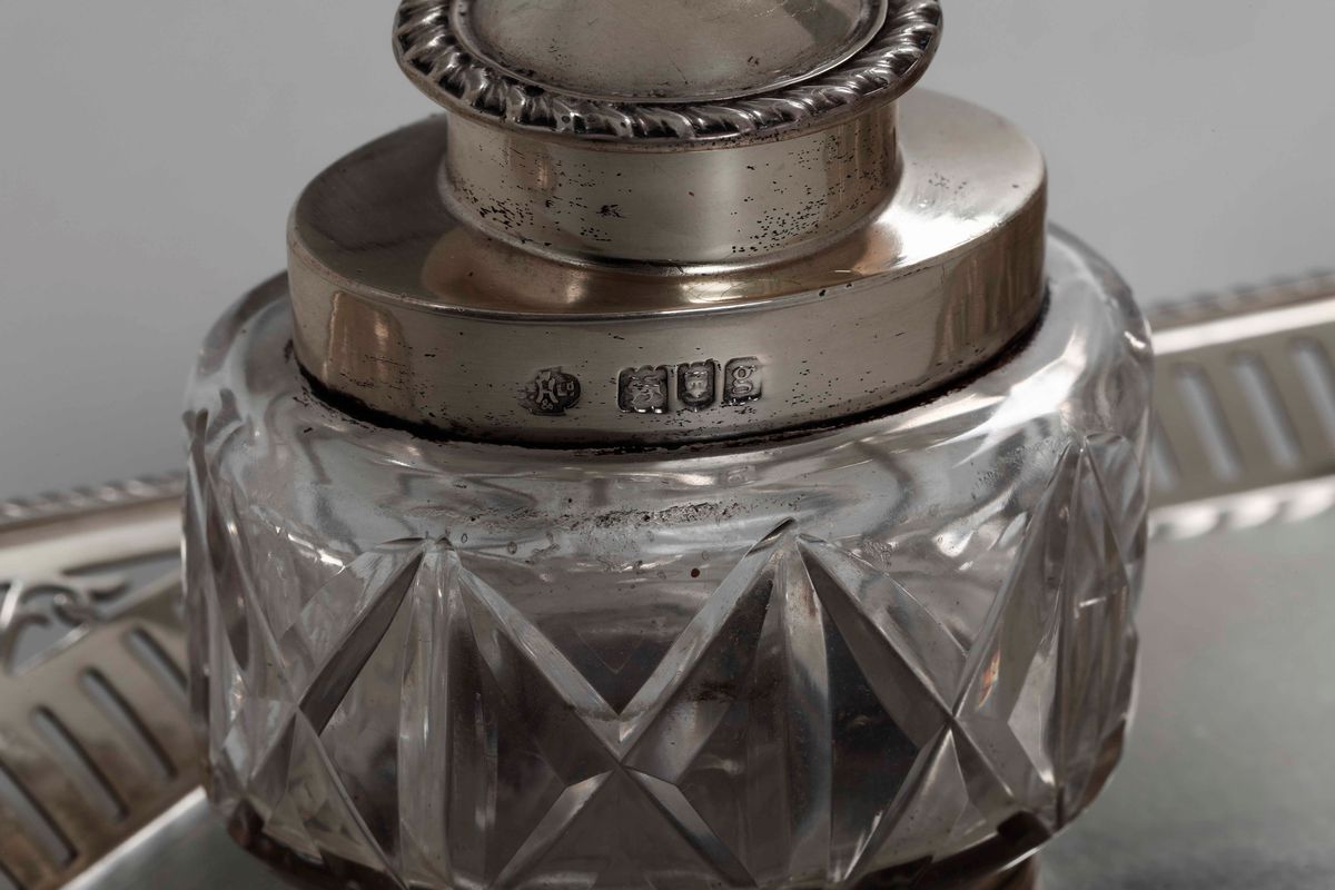 Set da scrittura in argento con ampolle in vetro, Londra 1902.