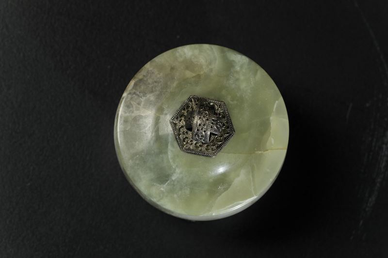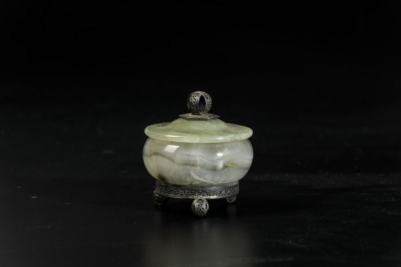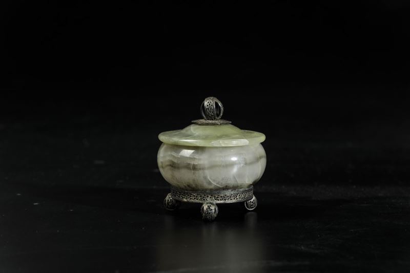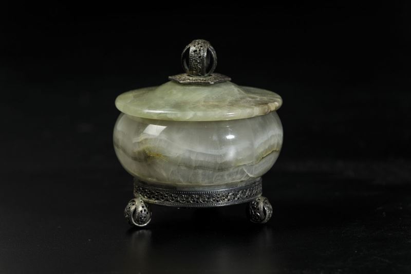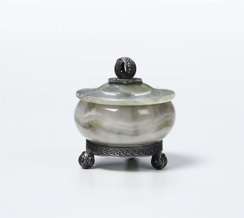 Vasetto in alabastro e filigrana di argento, marchiato 800