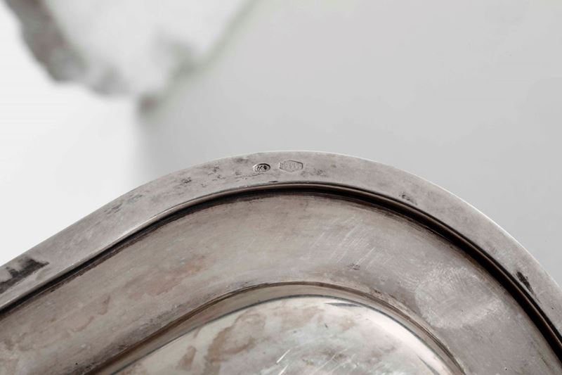 Vassoio con manici in argento. Argenteria italiana del XX secolo. Argentiere G.Fava, Genova