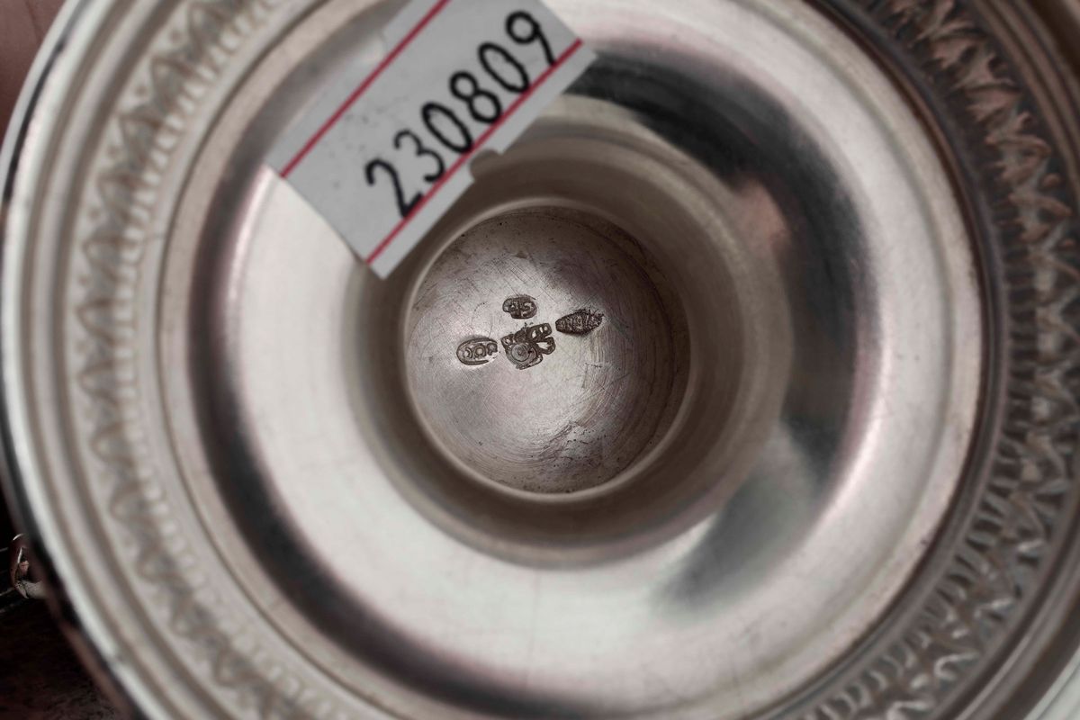 Zuccheriera stile Impero in argento. Argenteria artistica italiana del XX secolo