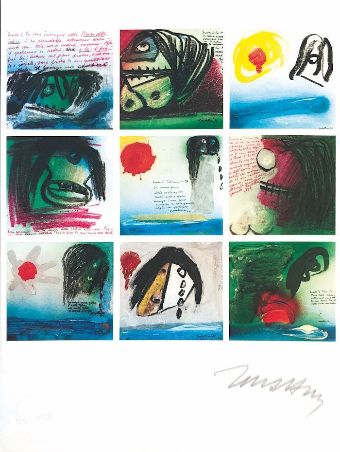 All of them in limited edition, numbered and hand-signed by the artists: Emilio Vedova, Luigi Veronesi, Enrico Baj, Andy Wahrol, Renato Guttuso, Ibrahim Kodra, Floriano Bodini, Cesare Zavattini, Giò Pomodoro.