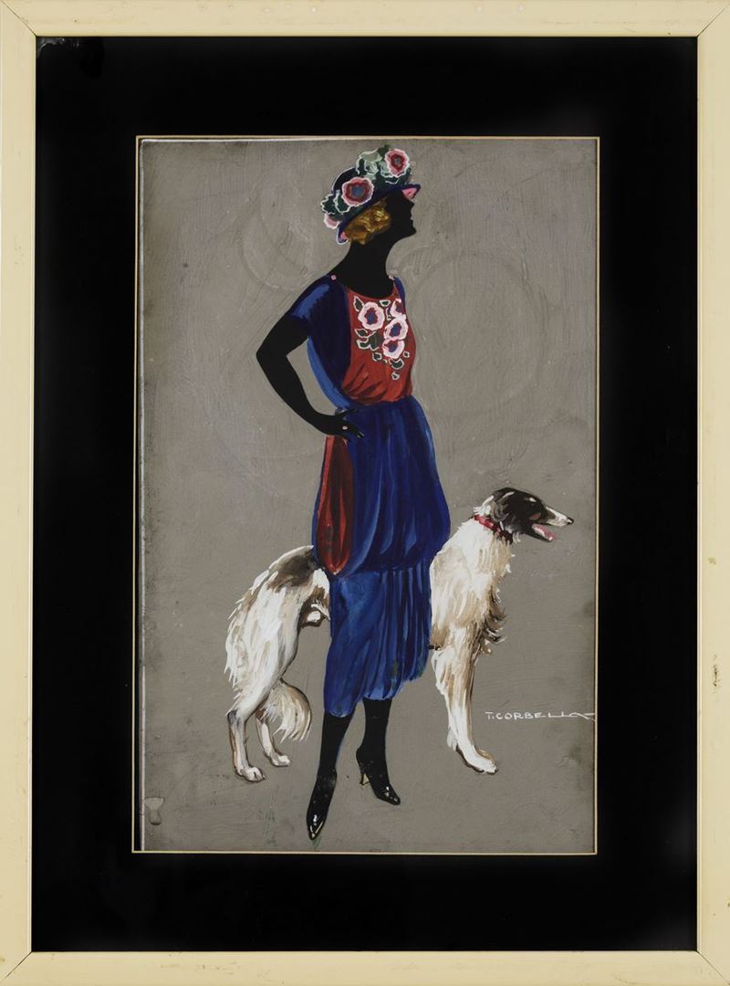 Tito Corbella (1885-1966) DONNA CON LEVRIERO