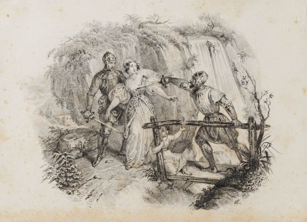 Francesco Hayez (Venezia 1791 - Milano 1882), attribuito a Dama tra due duellanti