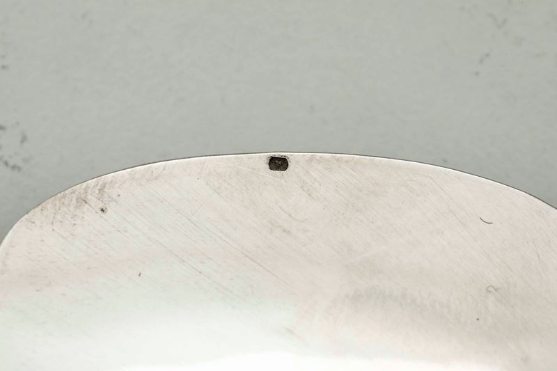 Centrotavola Art Deco in argento 900 con presentoire circolare a specchio. Argenteria italiana del XX secolo. Bollo del [..]