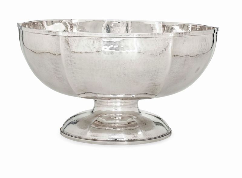 Coppa centrotavola in argento. Argenteria italiana del XX secolo. Argentiere Calegaro, Padova