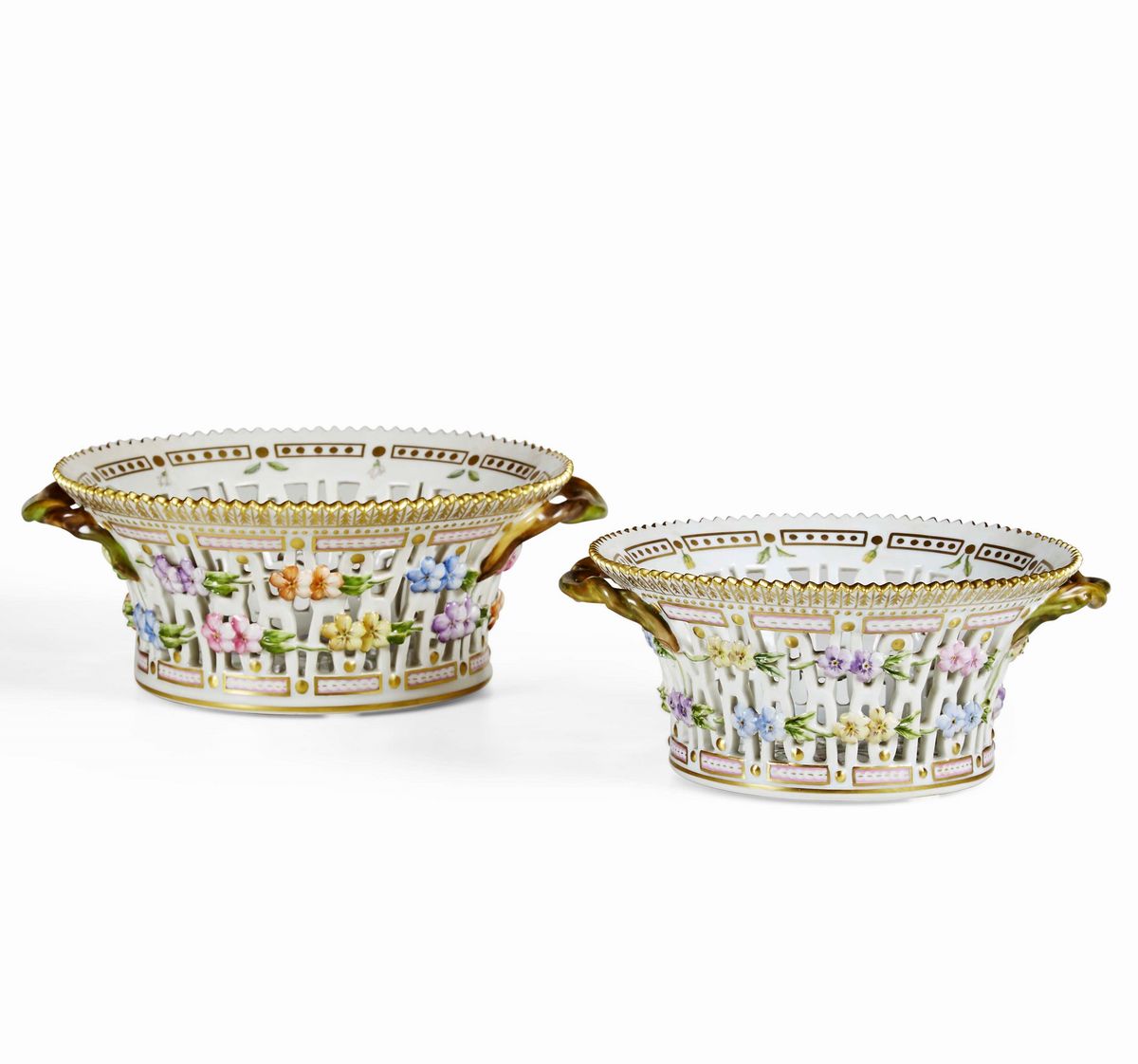 Due cestini dal servizio Flora Danica Danimarca, Manifattura Royal Copenaghen, 1975-1979 e 1980-1984