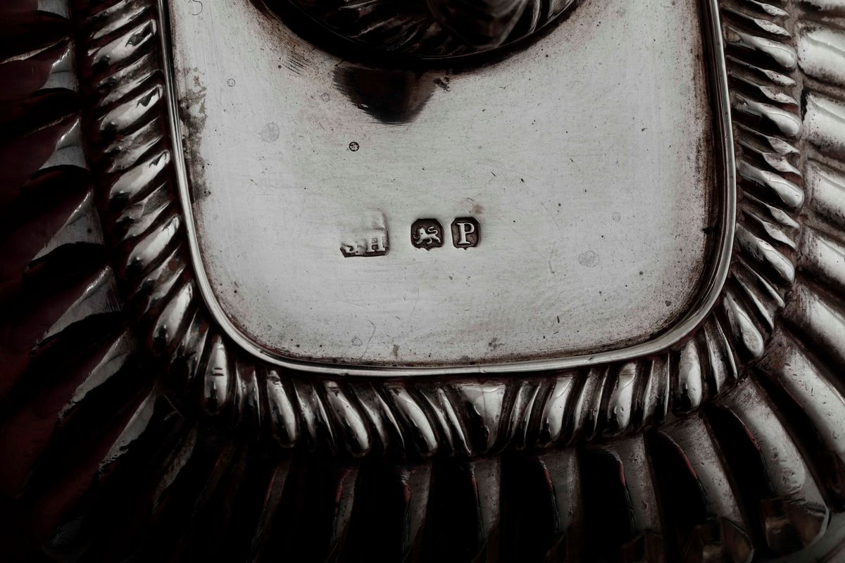 Il magnifico compendio realizzato da una delle storiche e più note famiglie di argentieri londinesi, quella degli Hennell attiva dal 1736 al 1900 e specializzata in importanti arredi per la tavola, è magistralmente eseguito nei modi del gusto Adam, influenzati dal classicismo antico di cui Robert Hennell fu uno dei principali divulgatori. Ecco quindi rappresentate ad ornare i preziosi oggetti vivide raffigurazioni con teste e zampe leonine che esaltano la linearità delle superfici incorniciate da motivi a baccellatura e nervatura.