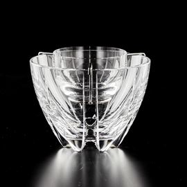 Cristallo e acciaio. Marca: simbolo grafico della manifattura con "Baccarat France". Dimensioni: altezza totale cm 14; diametro massimo cm 18. Conservazione: ottima
