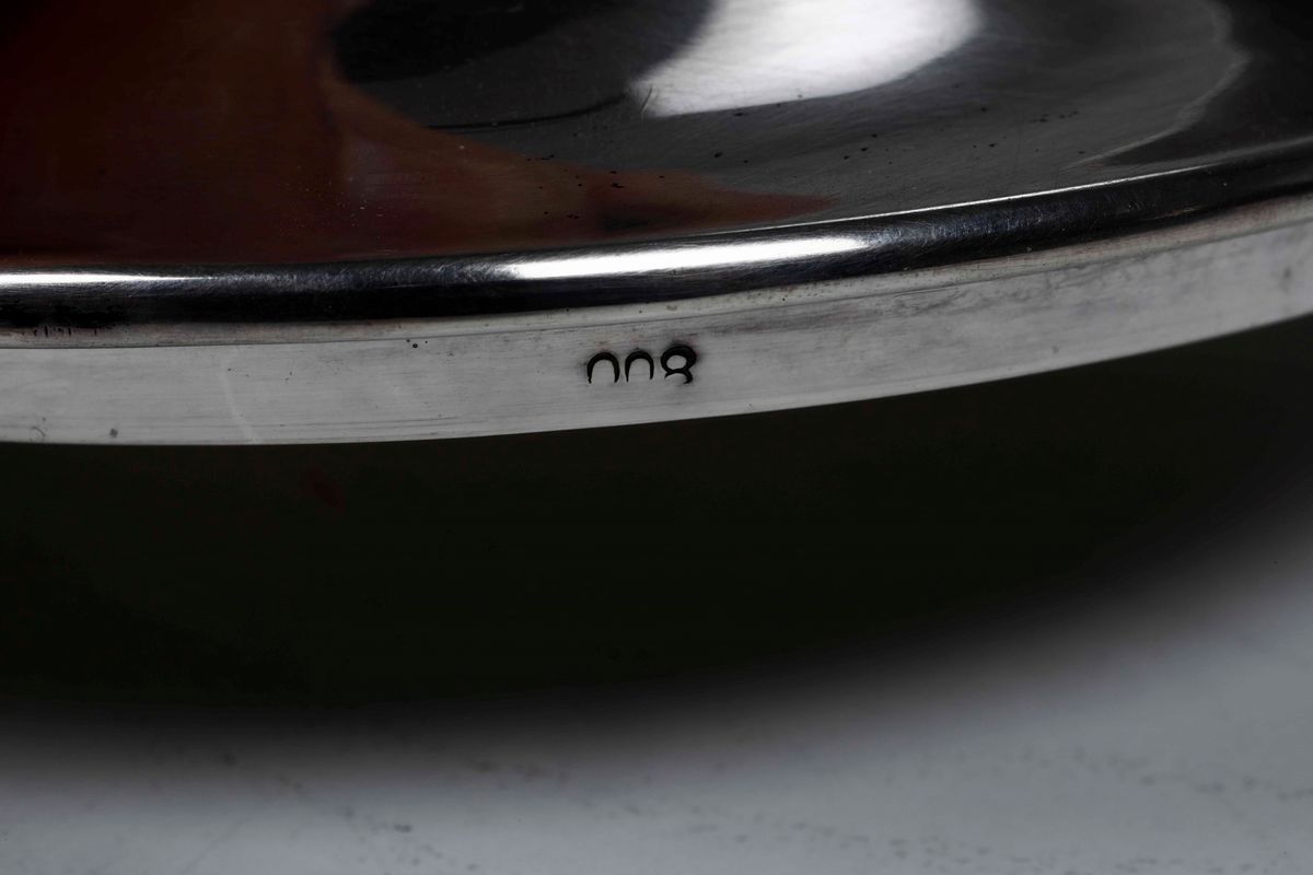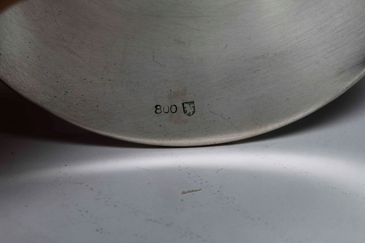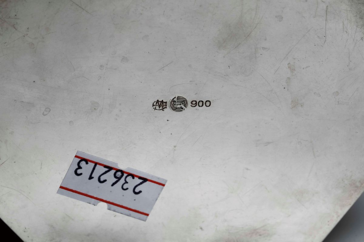 Portatè in argento 900. Argenteria milanese del XX secolo. Argentiere Messulam.