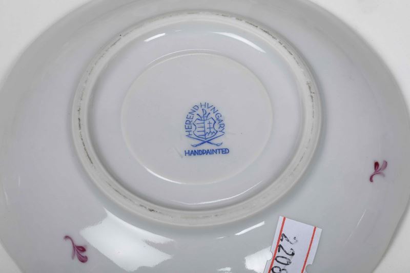 Porcellana. Marca: simbolo della Manifattura "Herend Hungary Handpainted" in blu; "Herend" e numeri diversi impressi