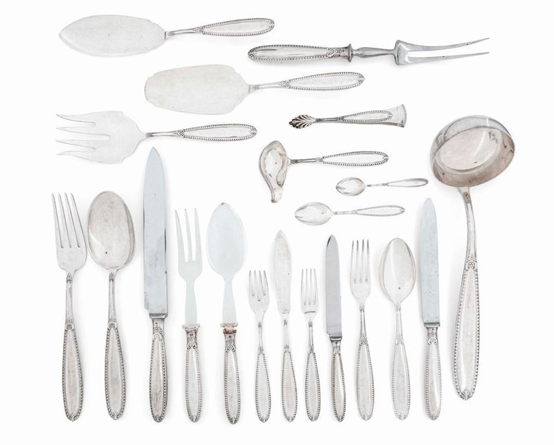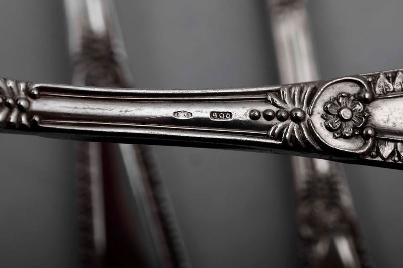 Servizio di posate in argento. Argenteria artistica italiana del XX secolo. Argentiere Cesa, Alessandria