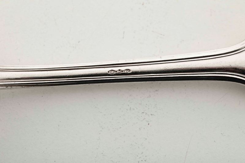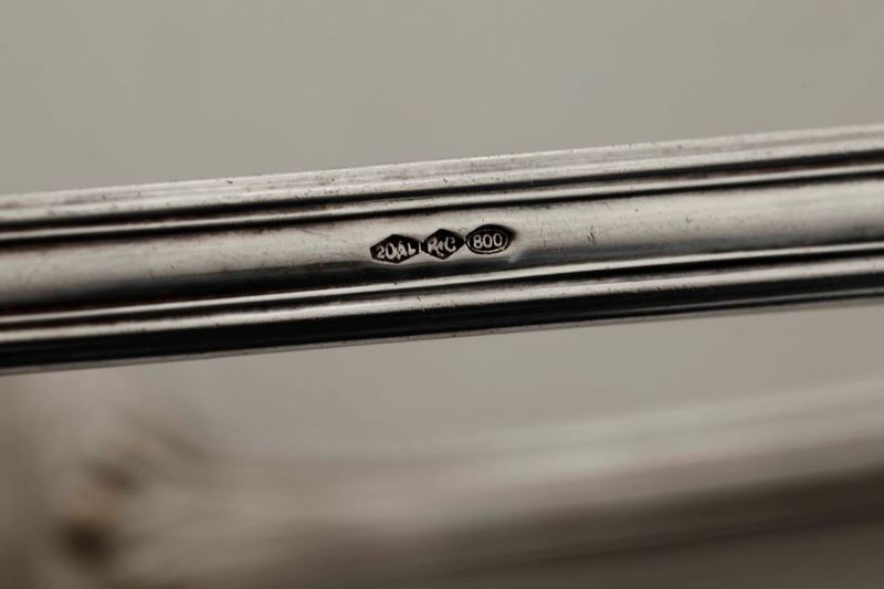 Servizio di posate in argento. Argenteria italiana del XX secolo. Argentiere Ricci & C., Alessandria