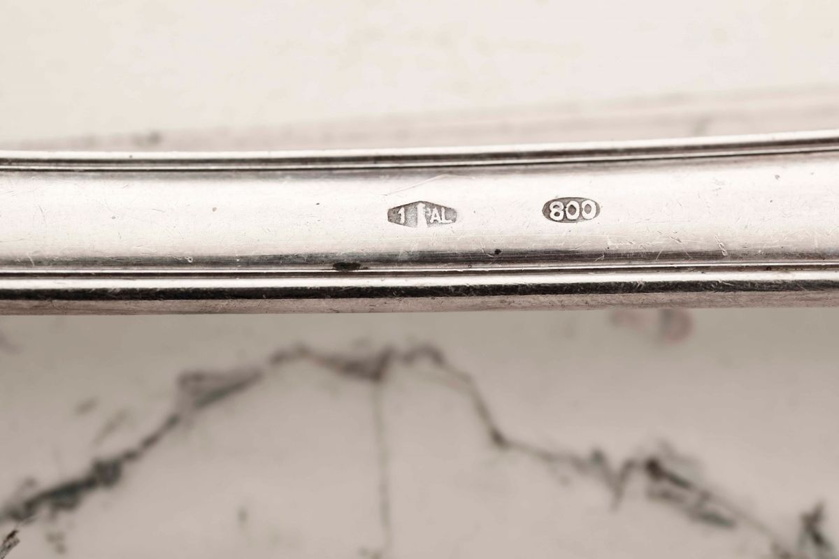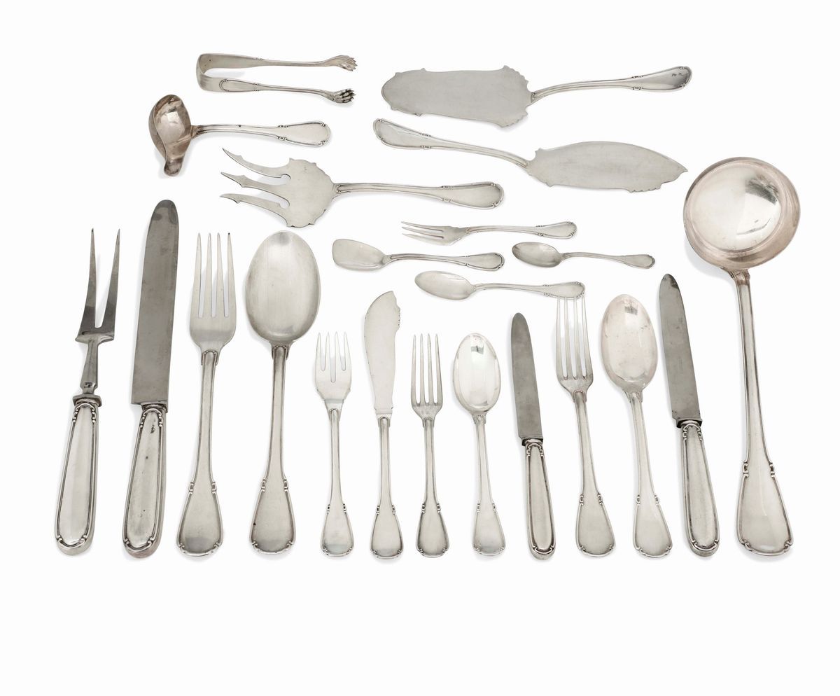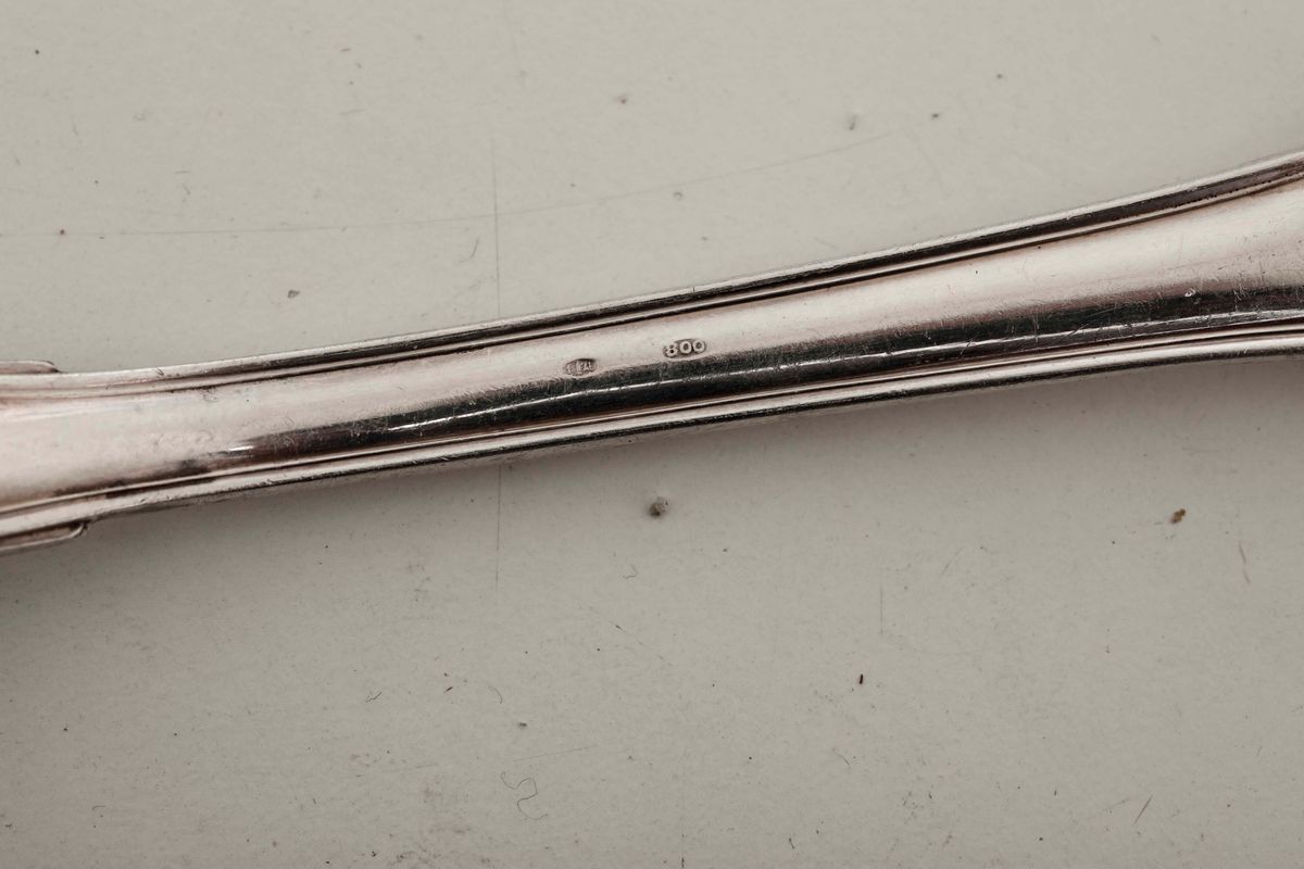 Servizio di posate in argento. Argenteria italiana del XX secolo. Bollo con fascio littorio in uso dal 1935 al 1945. Argentiere [..]