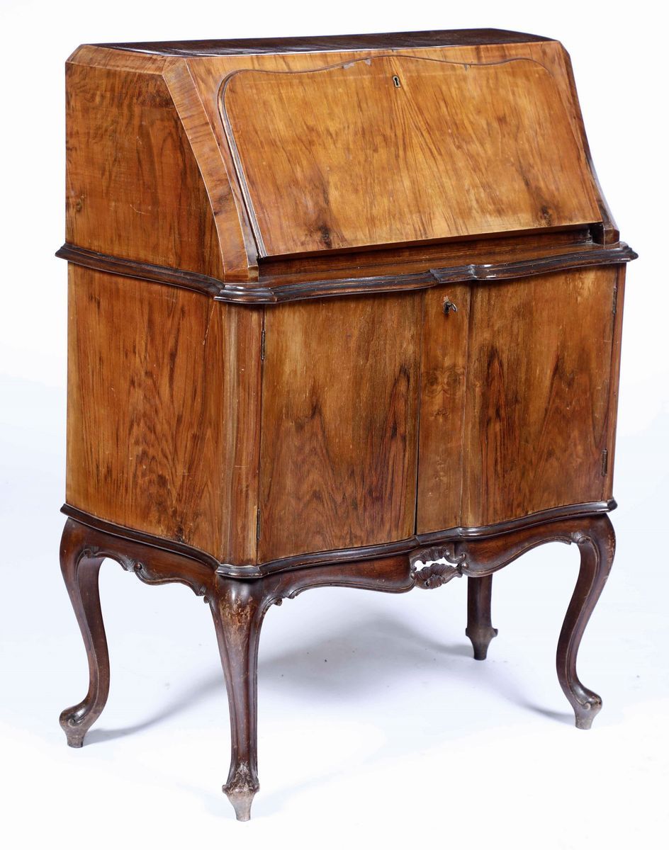 composto da: 24 coltelli grandi, 24 forchette grandi, 12 cucchiai grandi, 12 cucchiai da tè, 24 forchette da dolce, 11 forchette diverse, 24 palette da dolce, 10 cucchiaini da caffè, 16 cucchiaini da caffè, 11 cucchiai da dolce, 12 posate da portata (coltello forchettone per arrosto, paletta dolci, mestolo, cucchiaio e forchetta a servire, coltello e forchetta pesce, coppia per insalata, posata per salsa, pinza ghiaccio). Custodito in un mobile a ribalta in stile veneto costruito appositamente per il servizio, XX secolo
