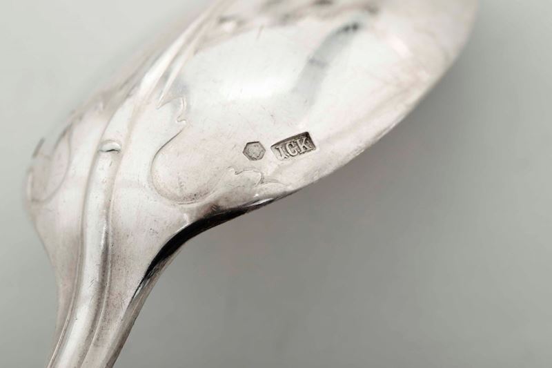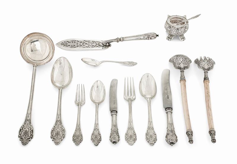 Servizio in argento fuso sbalzato e cesellato. Argenteria austro ungarica, Vienna fine XIX secolo. Argentiere J.C.K.