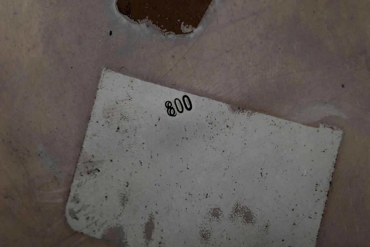 Corpo nervato con prese a foggia di serpi avvinghiate e presa fogliacea. Elegante incisione con stemmi nobiliari affiancati e sormontati da corona