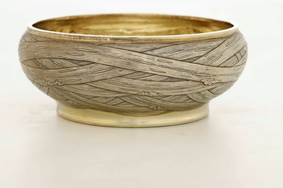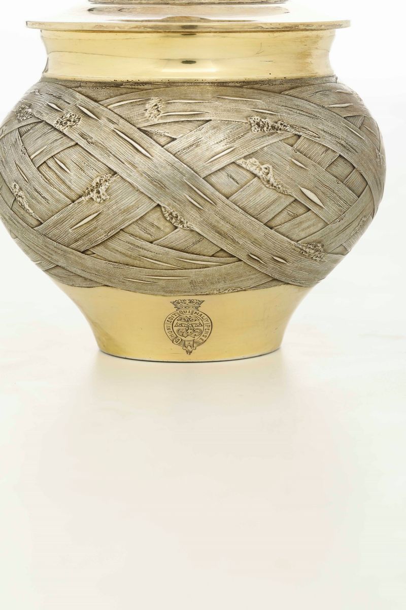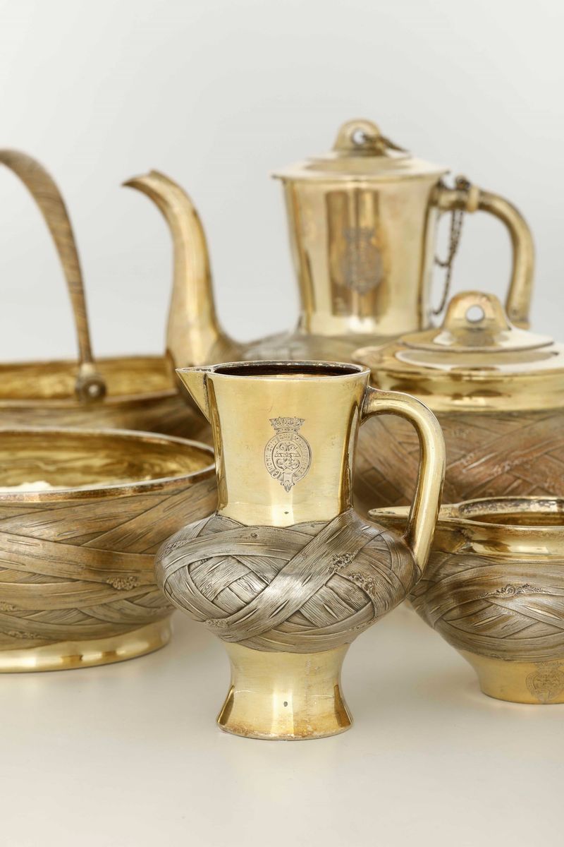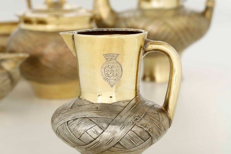 Molten, embossed, chiselled and gilt silver. 5 piece set