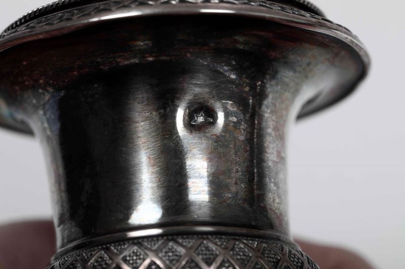 Calamaio in argento. Milano XVIII secolo, bolli di garanzia in uso dal 1812 al 1872, argentieri Legnani e Boschetti