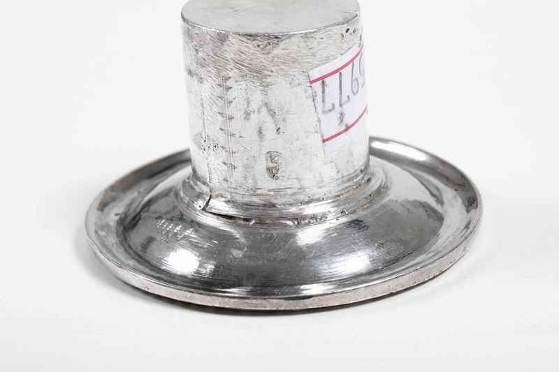 Coppia di candelieri in argento fuso, sbalzato e cesellato. Roma, inizio del XIX secolo Mastro argentiere Pietro Paolo Spagna [..]