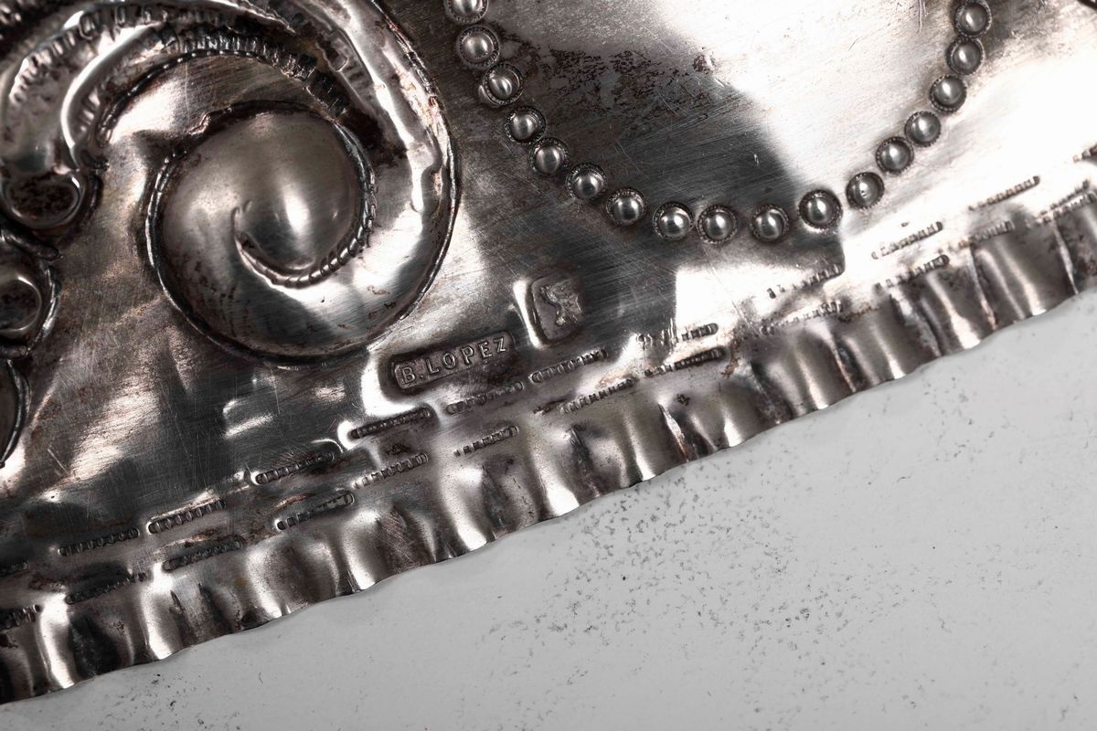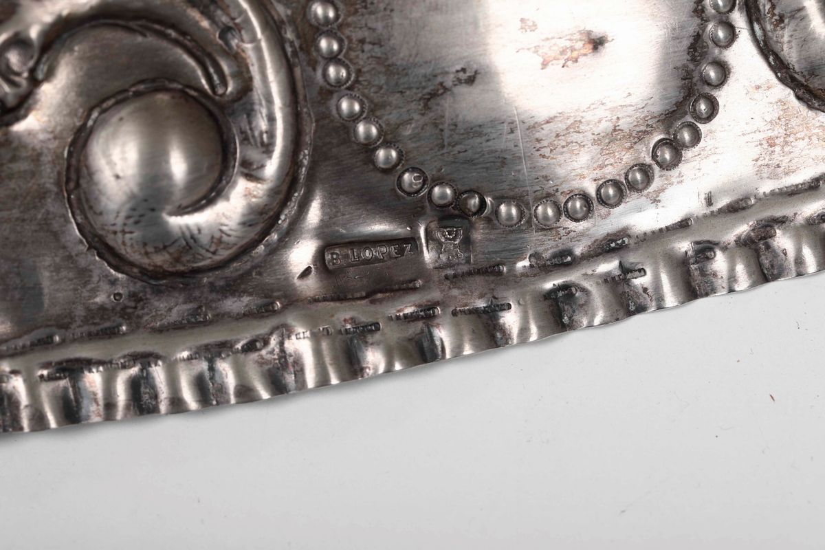 Coppia di piatti da parata in argento sbalzato e cesellato. Spagna o America latina, fine del XIX secolo