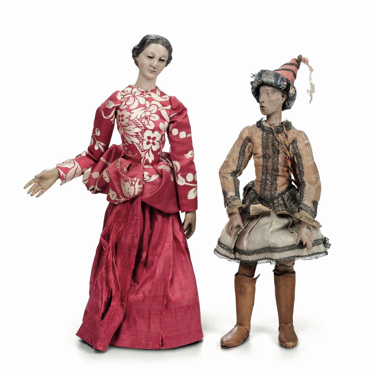 Dama e paggio Terracotta e legno policromo, vetro e stoffa Arte presepiale genovese del XVIII-XIX secolo