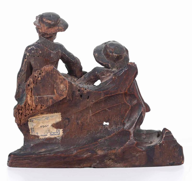 Gruppo in legno con scena galante con pastorelli. Legno policromo. Alto Veneto XVIII secolo