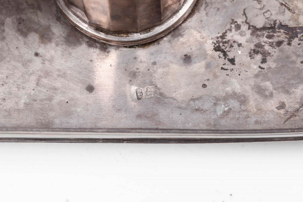 Oliera in argento fuso, sbalzato, traforato e cesellato. Ampolle in vetro molato. Genova marchio della Torretta per l’anno [..]