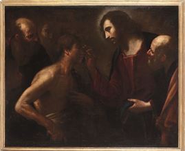 Scuola caravaggesca del XVII secolo Guarigione del cieco di Gerico