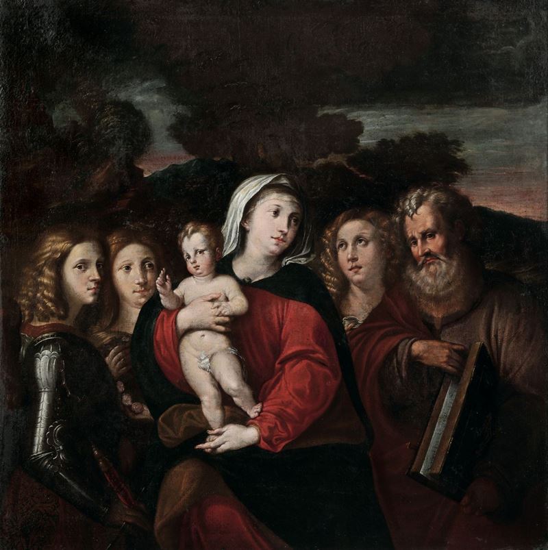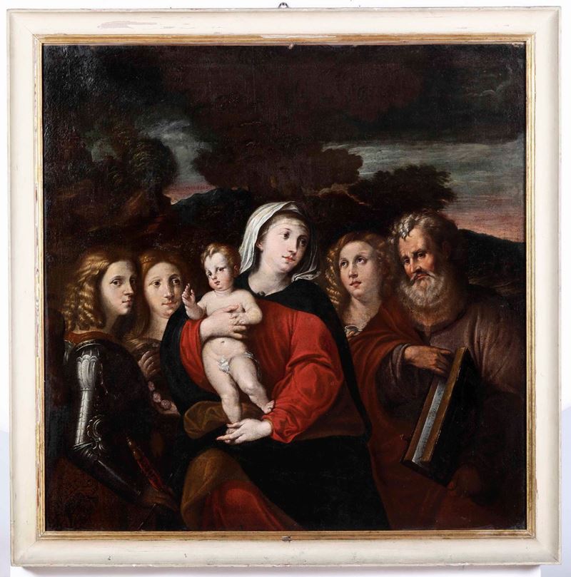 Scuola emiliana del XVI secolo Madonna con Bambino e Santi