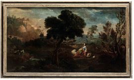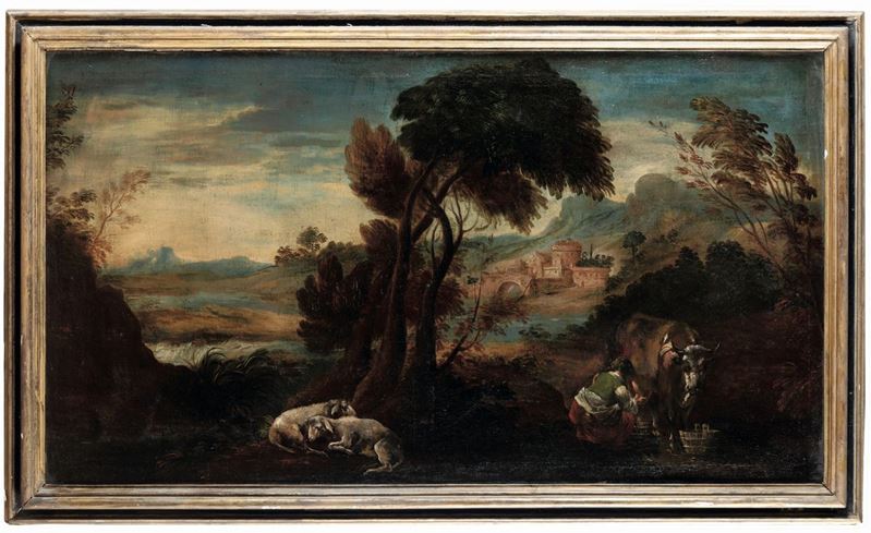 Scuola fiamminga del XIX secolo Paesaggi con pastori e armenti