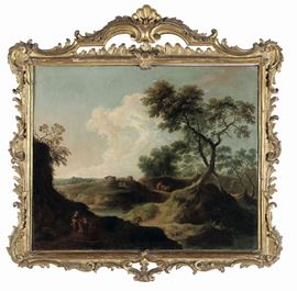 coppia di dipinti a olio su tela, cm 72x87 entro ricche cornici in legno intagliato e dorato