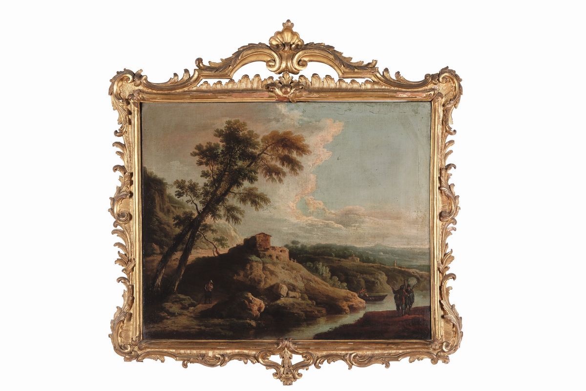 Scuola italiana del XVIII secolo Paesaggi con contadini e viandanti
