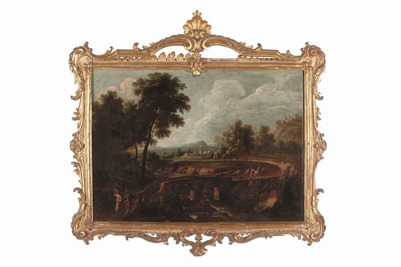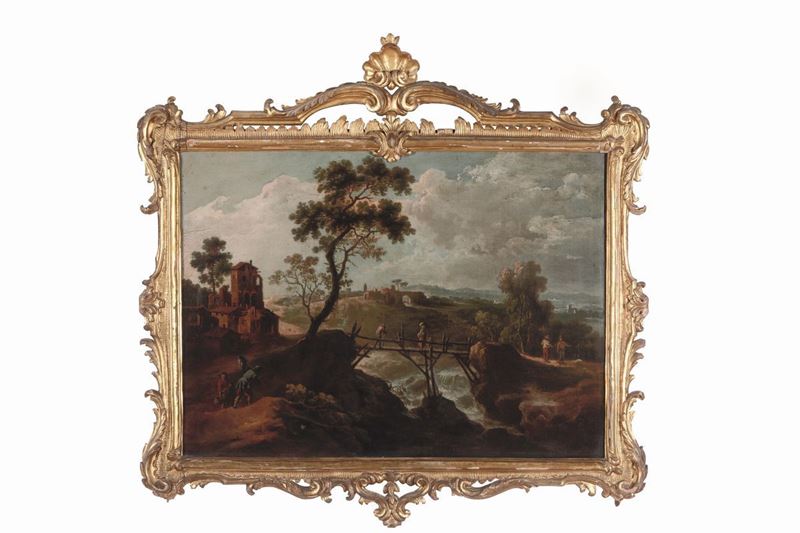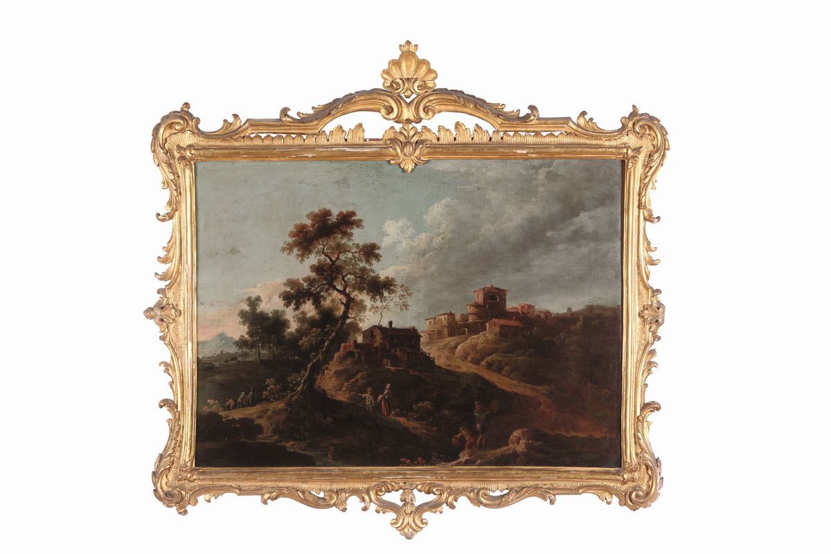 Scuola italiana del XVIII secolo Paesaggi con contadini e viandanti