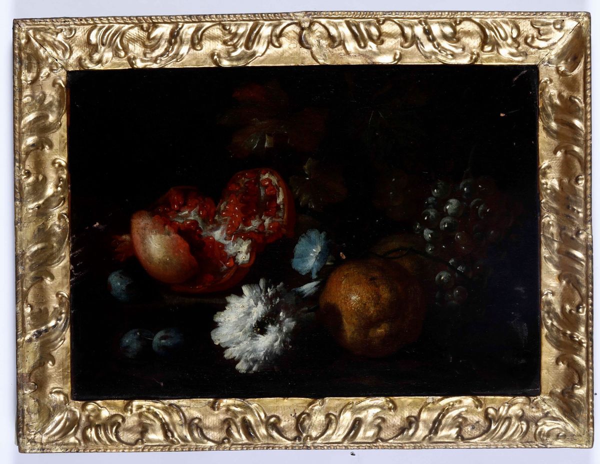 Scuola romana della fine del XVII secolo Natura morta con fiori, limone e melograno