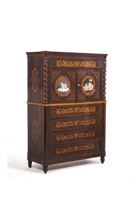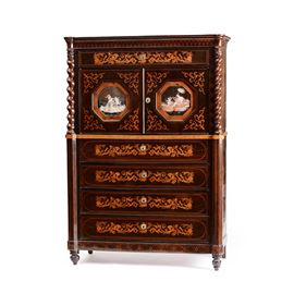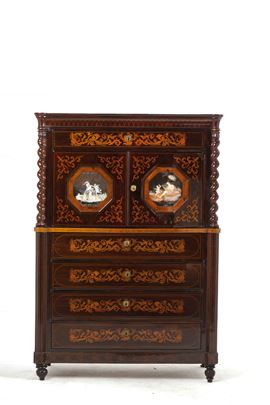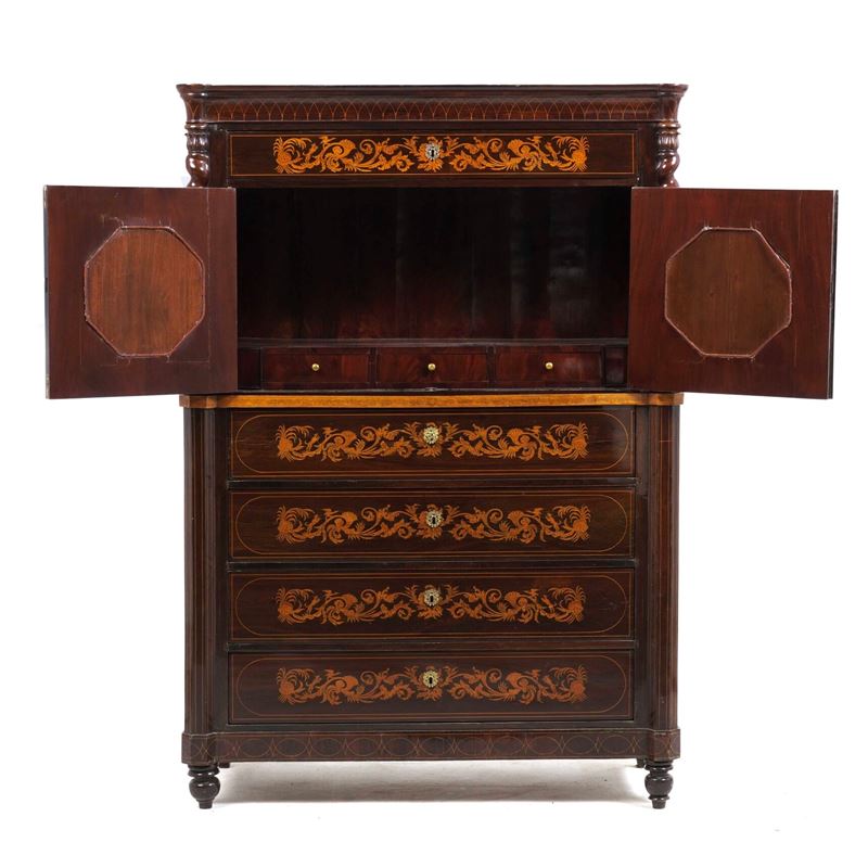 Secretaire lastronato ed intarsiato. Napoli, Carlo X, XIX secolo