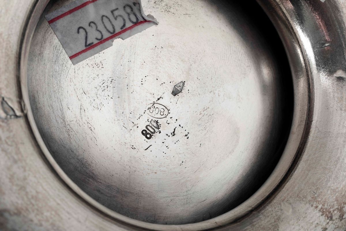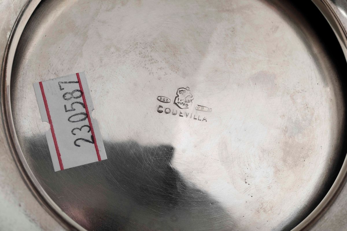 Servizio da tè e caffè in argento in stile barocchetto genovese Caffettiera e zuccheriera con bolli fascio littorio in uso [..]