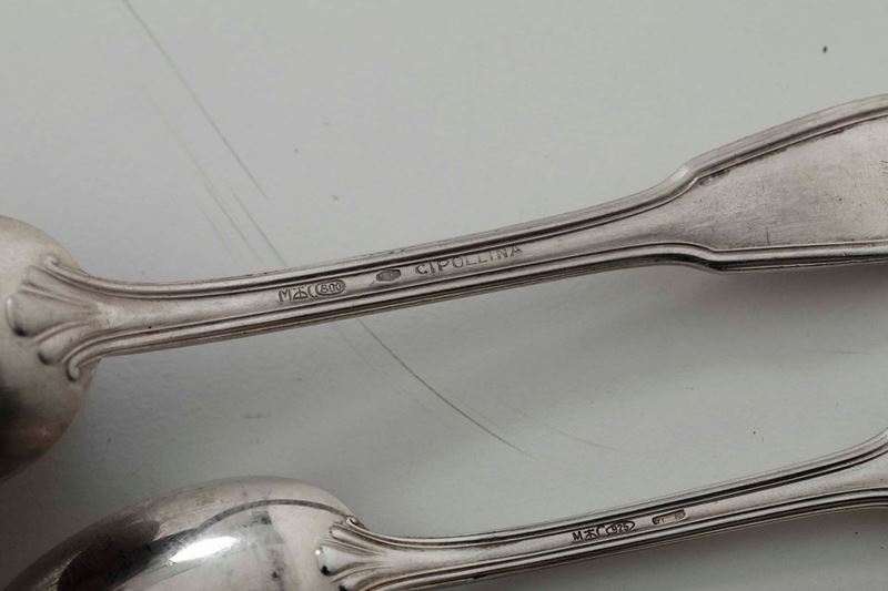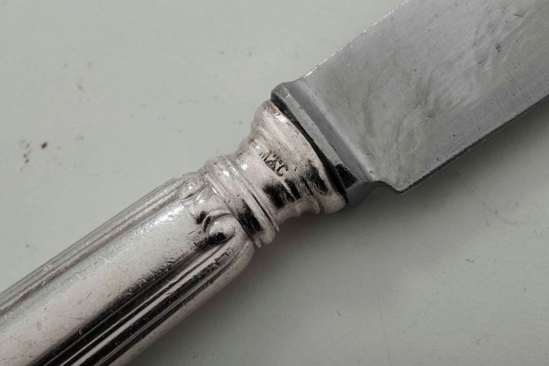 Servizio di posate in argento da dodici, argenteria italiana del XX secolo