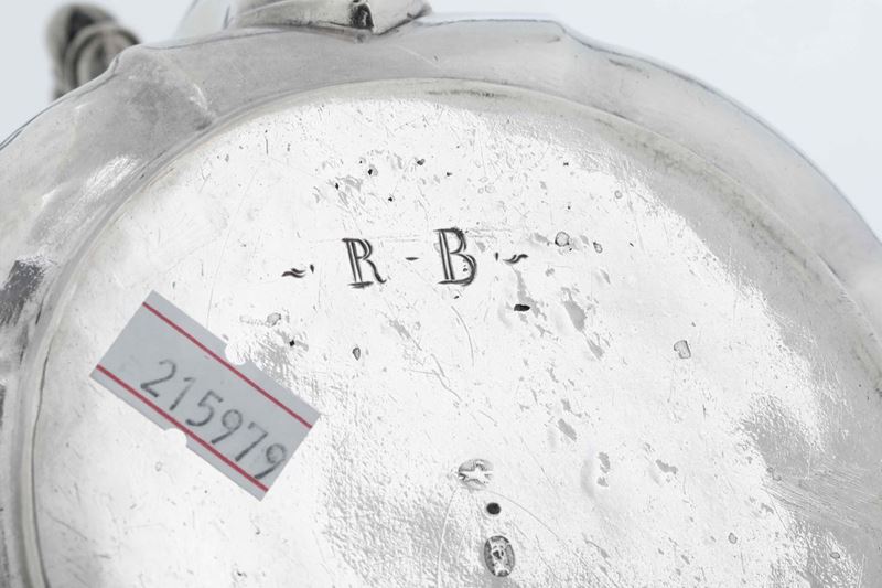 Teiera in argento fuso, sbalzato e cesellato. Germania (?) XVIII secolo. Argentiere ICM non identificato.