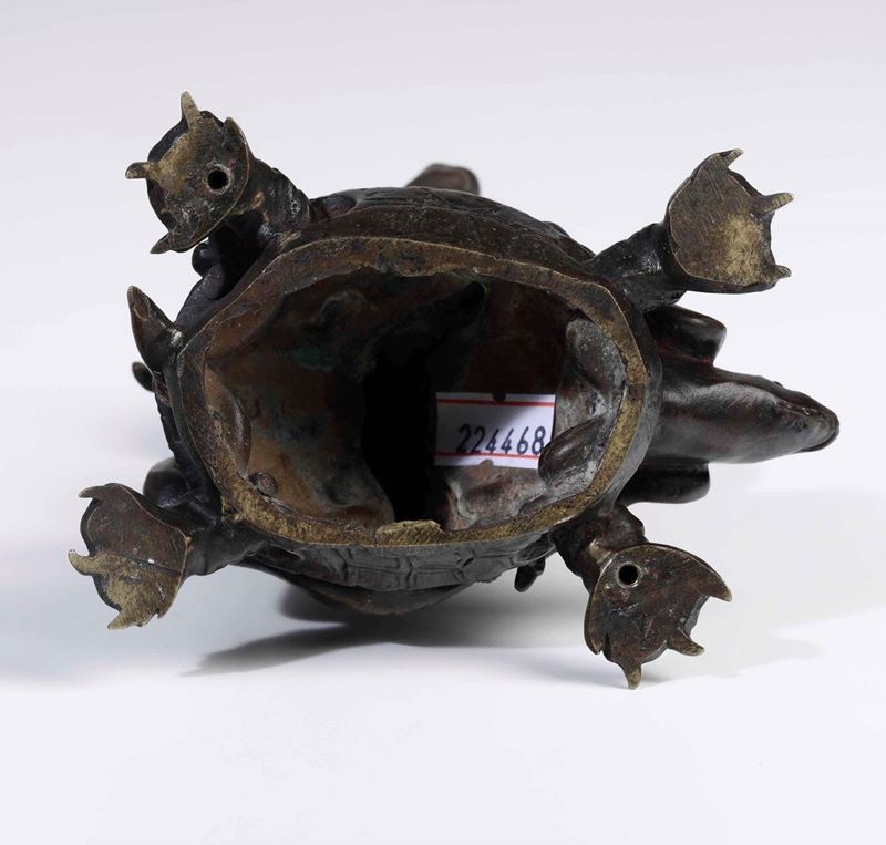 Tritone su tartaruga. Bronzo fuso e cesellato. Fonditore veneto o d’oltralpe, probabile XIX secolo