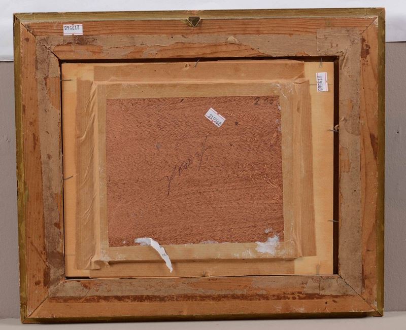 olio su compensato, cm 18x20, firmato in basso a destra