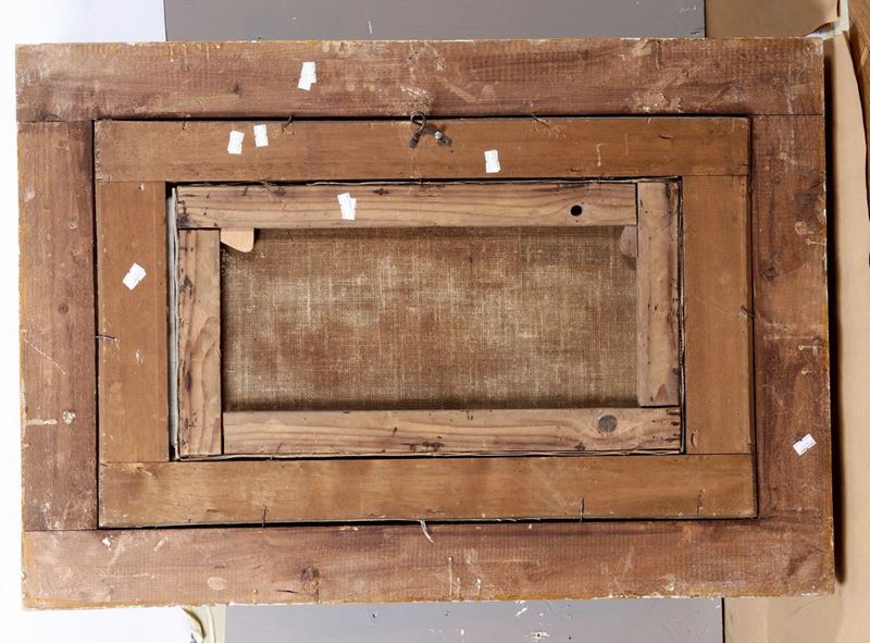 olio su tela, cm 27x50, firmato in basso a sinistra
