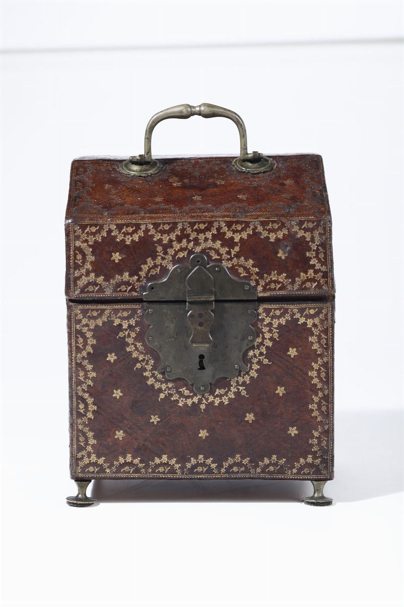 Cofanetto portaposate in pelle cuir brulé, XVIII secolo