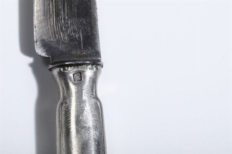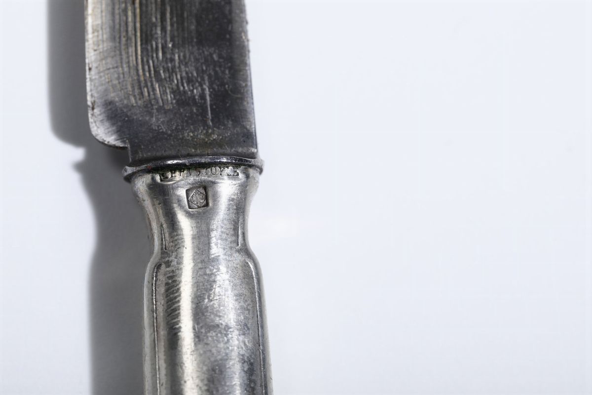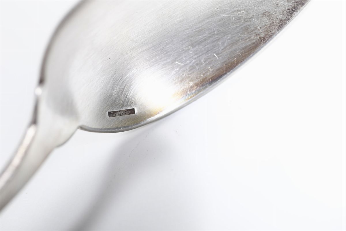 decorato in oro e contenete alcune posate