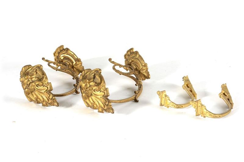 Due coppie di fermatende in bronzo dorato