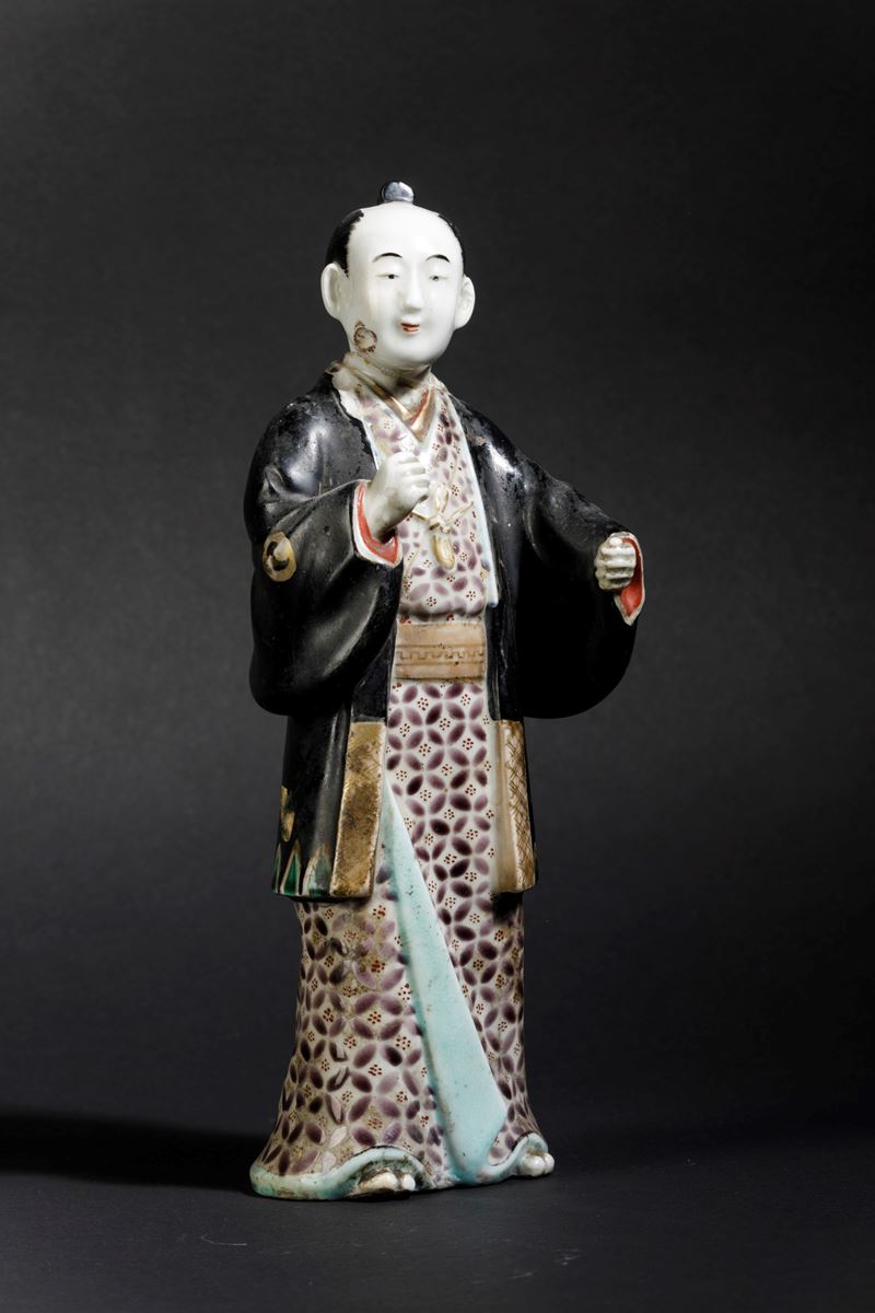 Figura maschile in porcellana a smalti policromi, Giappone, periodo Meiji (1868-1912)