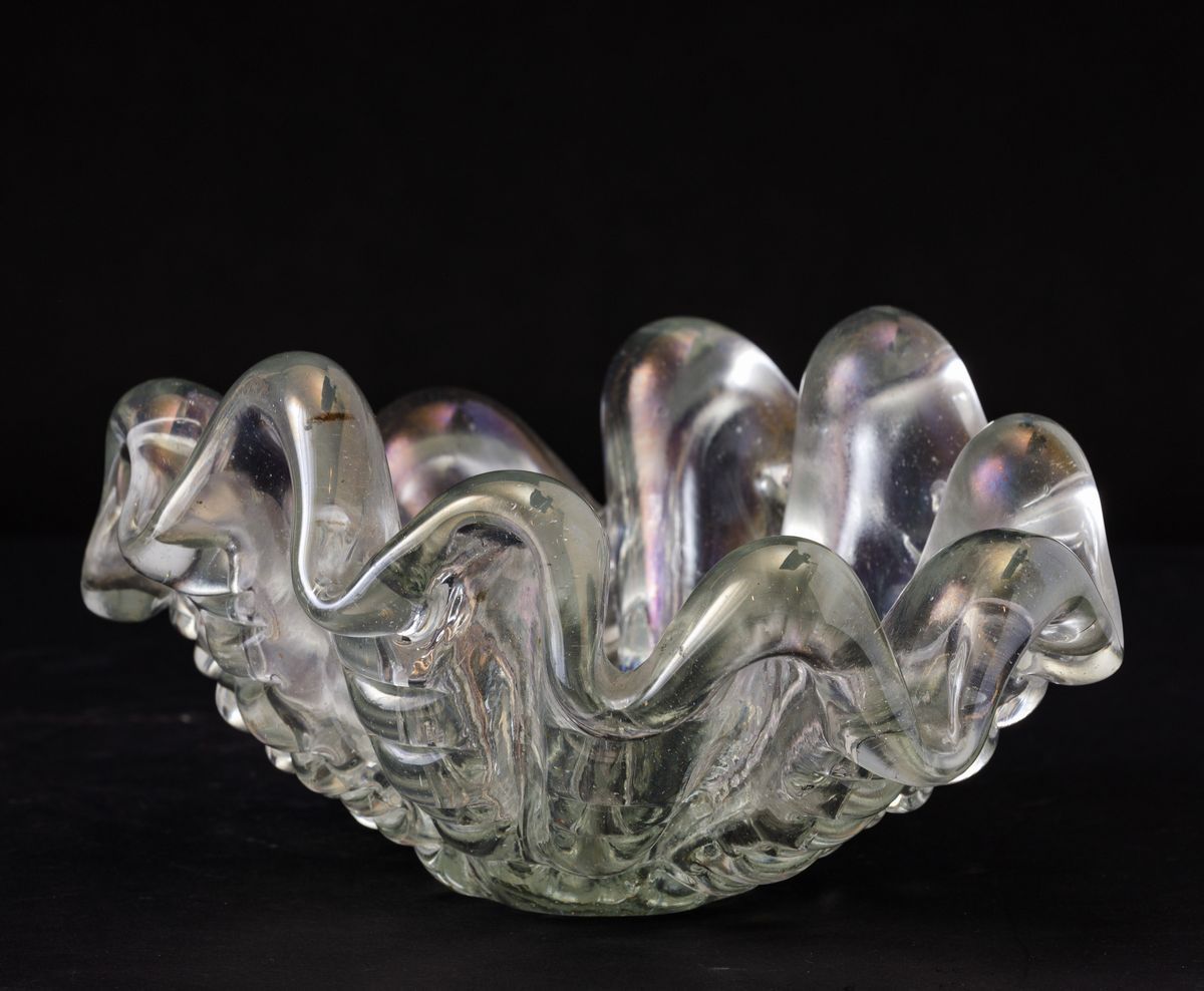 Ercole Barovier (1889-1972). A blown glass bowl from the A Grosse Costolature series with a fully iridised surface. 27x20cm, H 13cm
