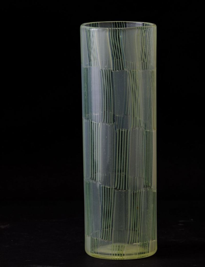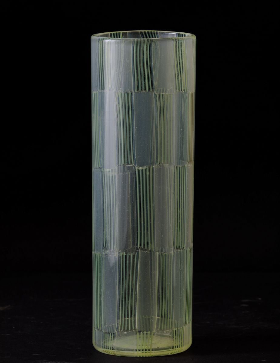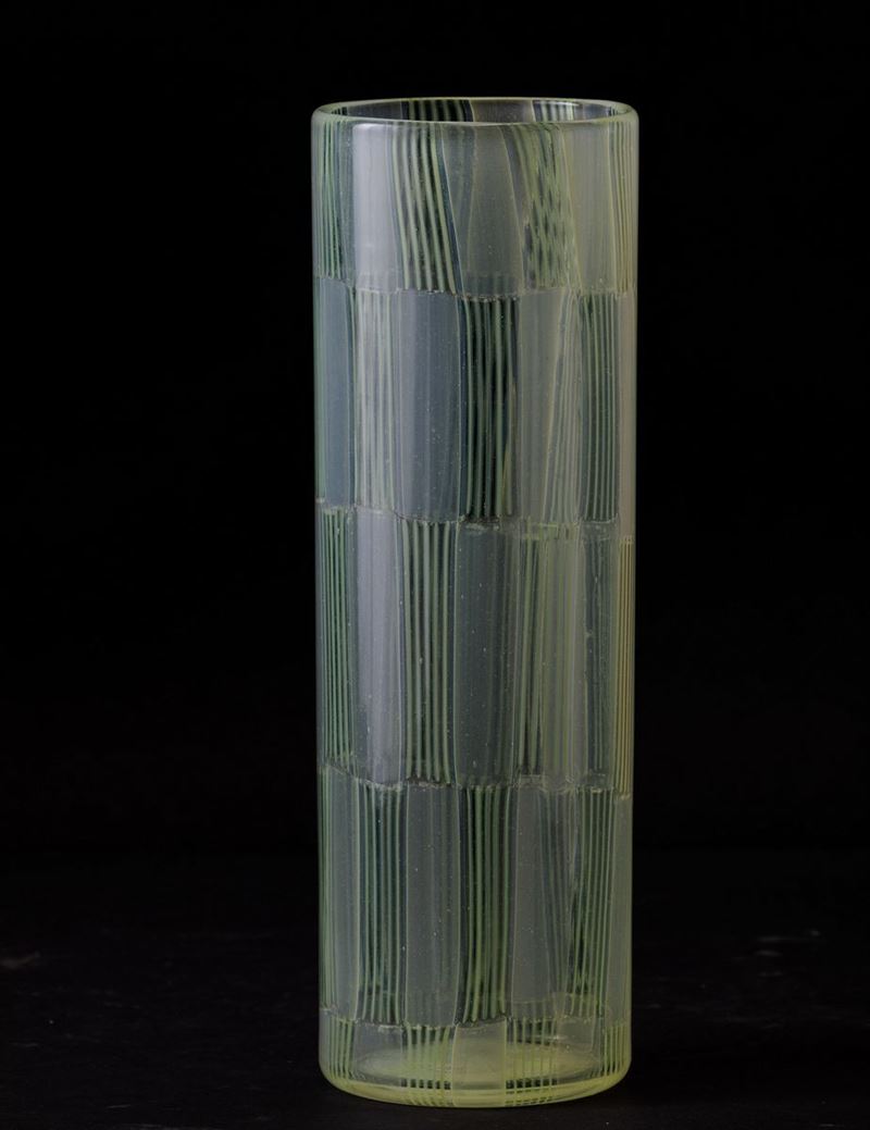 Ercole Barovier (1889-1972). A cylindrical blown glass vase from the Millefili series with a decor of tiles with thin polychrome canes. H 33.5cm