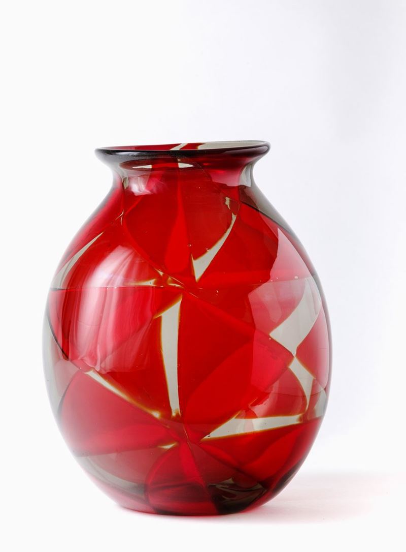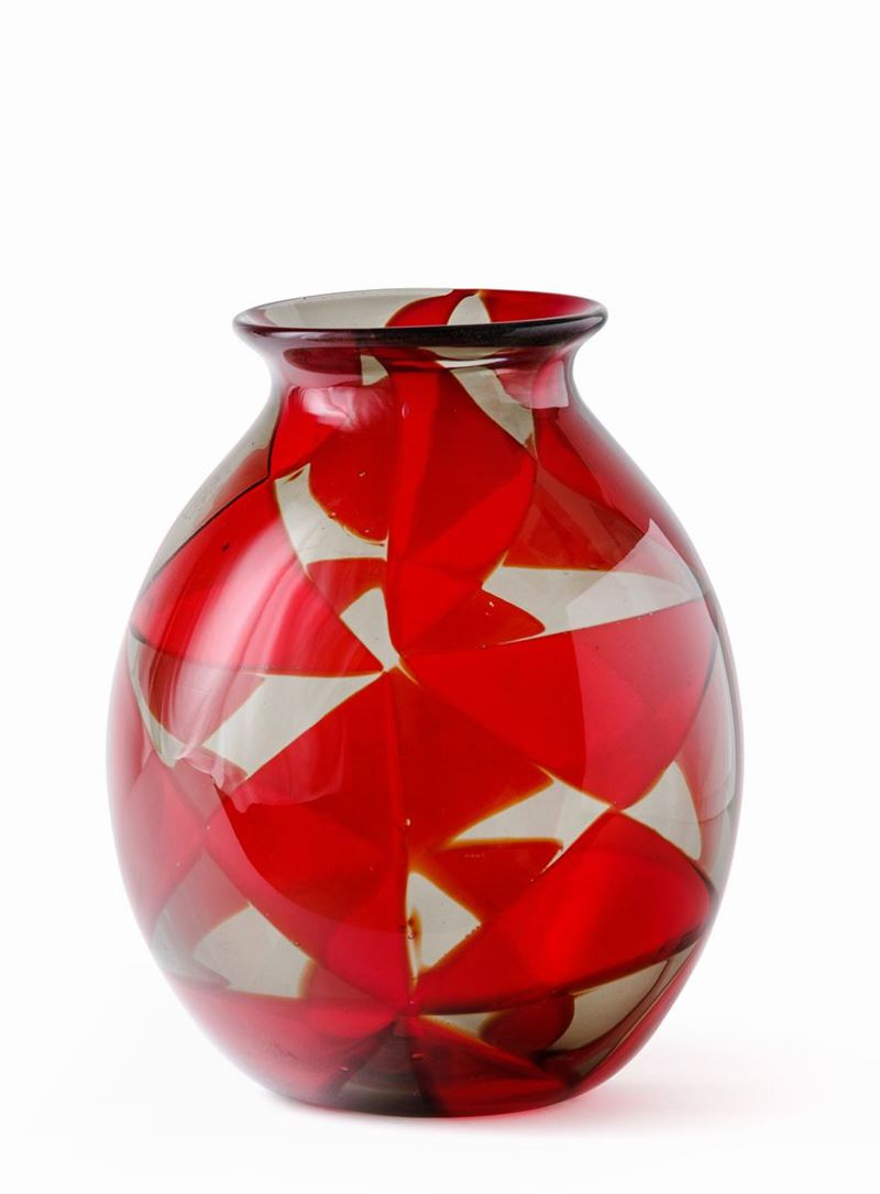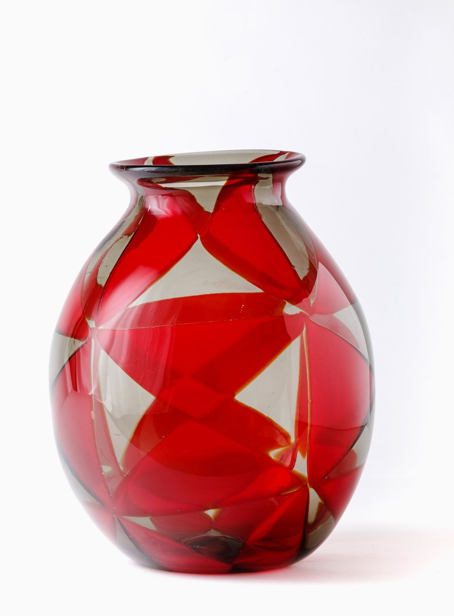 Ercole Barovier (1889-1972). A large vase from the Intarsio series with a decor of triangular ruby- and straw-coloured tiles. H 30.5cm, diam 23cm