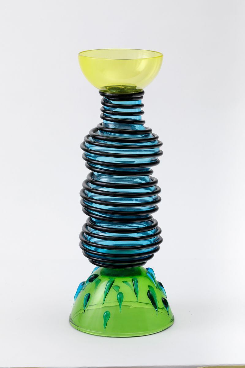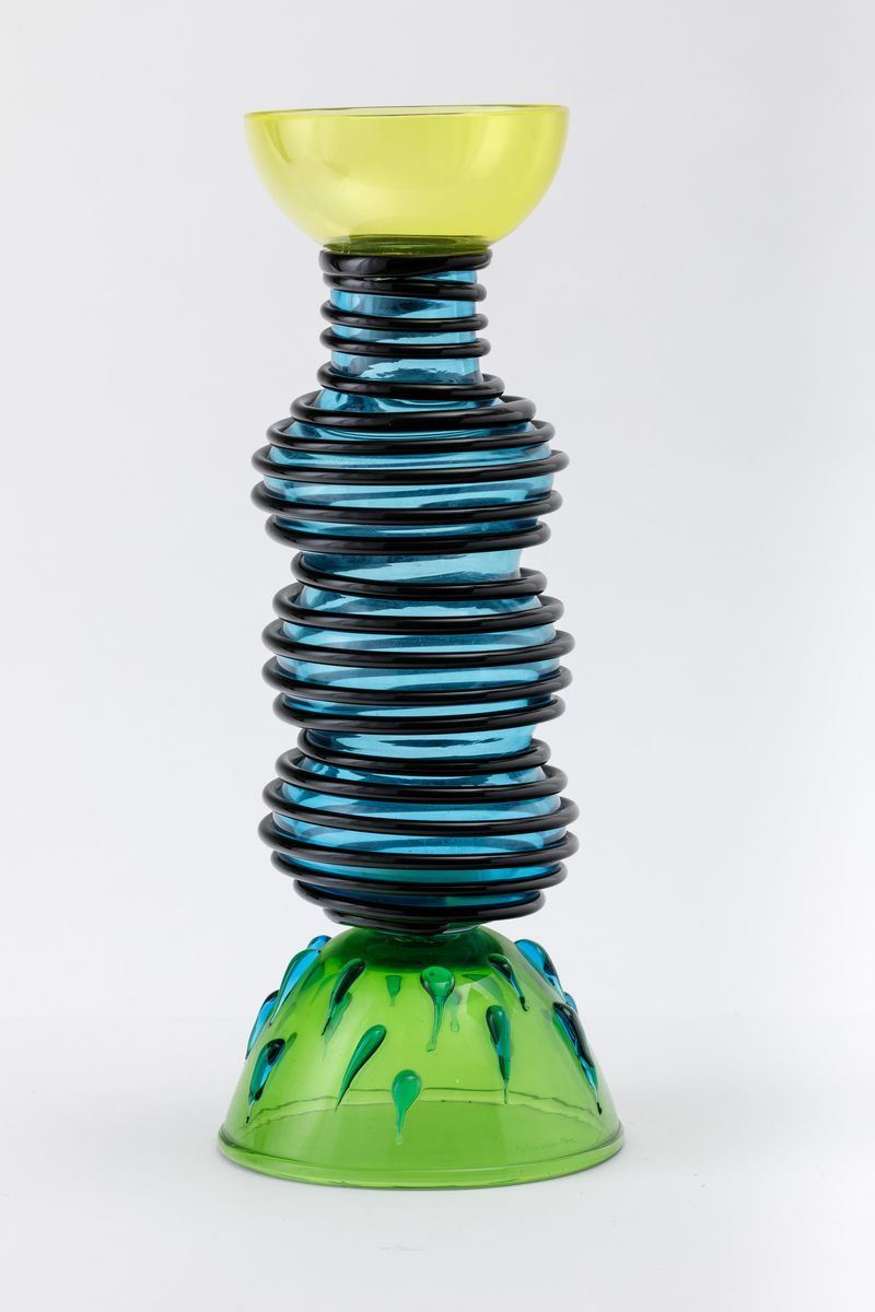 Ettore Sottsass (1917-2007). A large blown glass Alcor vase with applied drops and spirals. H 46cm. Engraved signature Memphis Made in Italy by Toso Vetri d'Arte